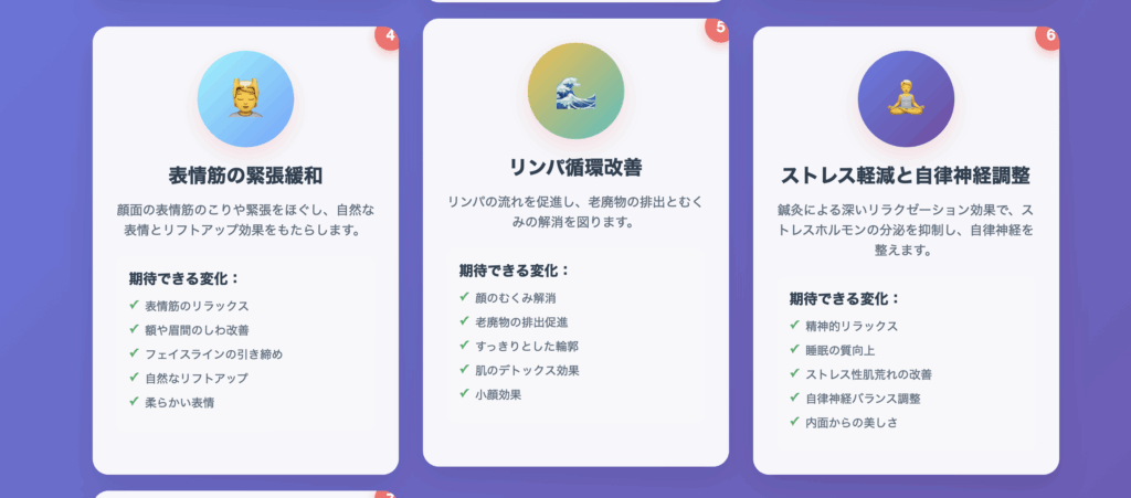 - リフトアップ効果 – 表情筋を刺激することでたるみを改善