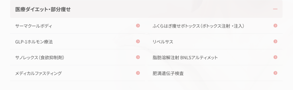 こちらはシロノクリニックにて医療ダイエット・部分痩せの分類で出てきた