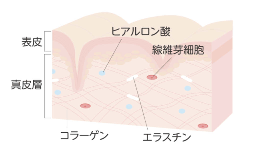 鍼で皮膚の奥にある真皮層に微細な傷をつけることで、脳は「組織が壊された」と認識します。 その傷を修復しようと、線維芽細胞という細胞が活性化され、肌の弾力を保つコラーゲンやエラスチンの生成が促進されるのです。 これにより、肌にハリと弾力が生まれ、しわやたるみの改善が期待できます。